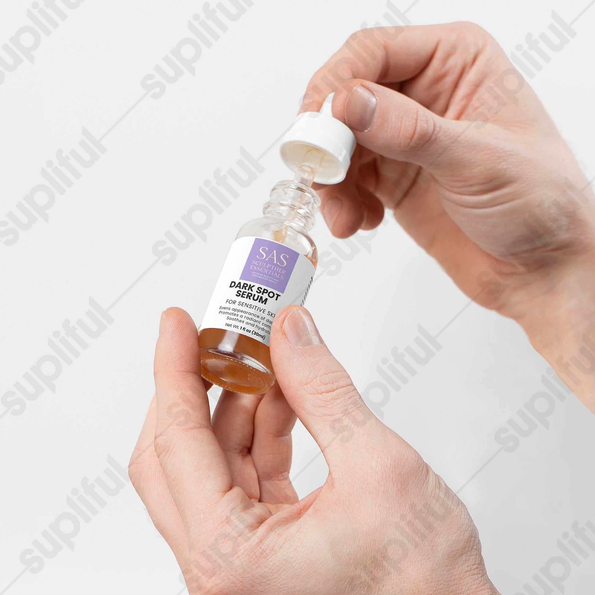 Introducing our Dark Spot Serum, designed for sensitive skin. Hydration sets the stage for targeted dark spot reduction. Natural extracts work together to brighten and even skin tone while providing soothing repair.