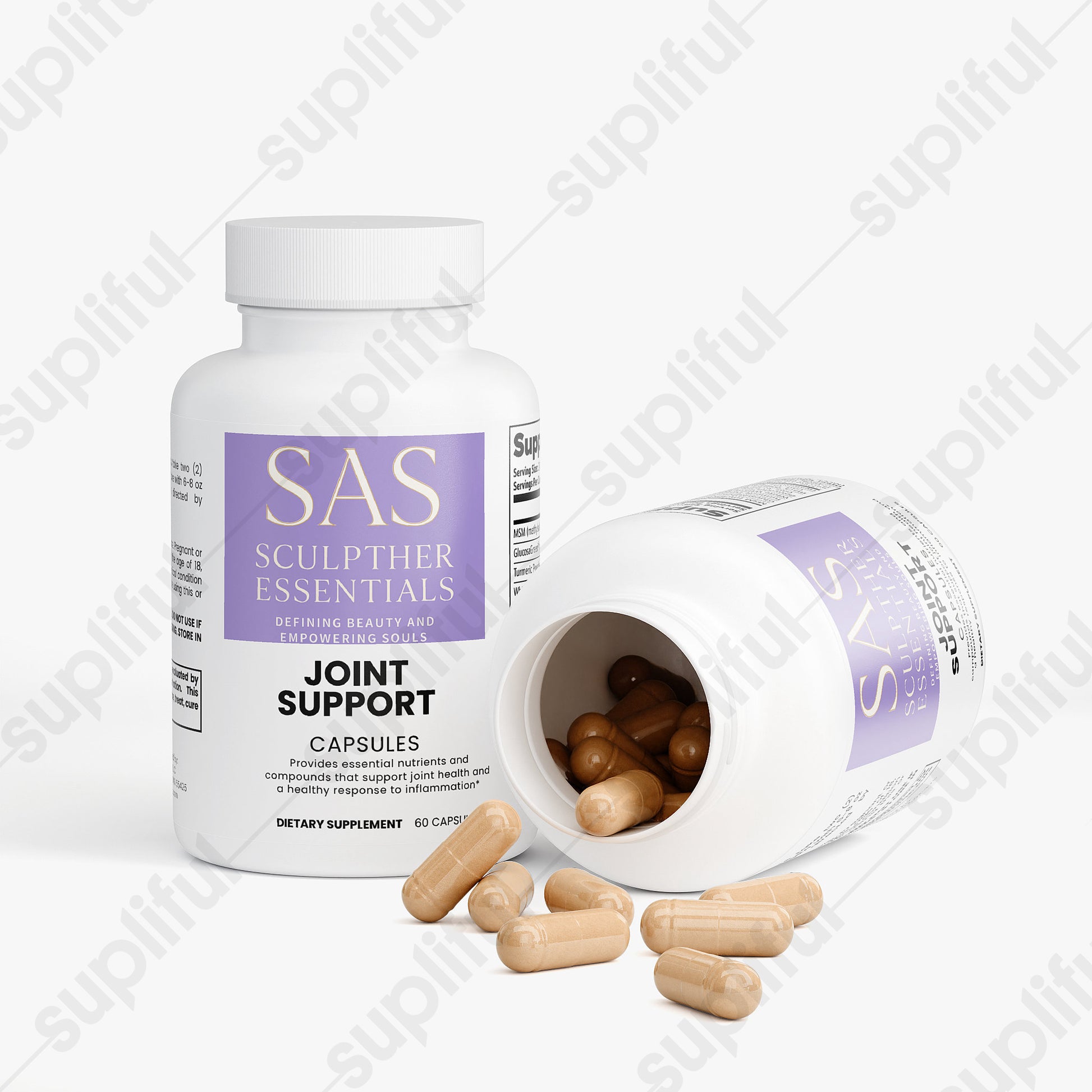 This joint support supplement provides essential nutrients and compounds that support joint health. It features a comprehensive blend of ingredients such as MSM, GlucosaGreen® vegetal glucosamine HCl, Turmeric Powder, and Boswellia serrata Extract, designed to promote joint flexibility, reduce discomfort, and support overall joint function. Ideal for daily consumption, this supplement aims to enhance your joint health through its potent, natural ingredients, without relying on artificial additives.*