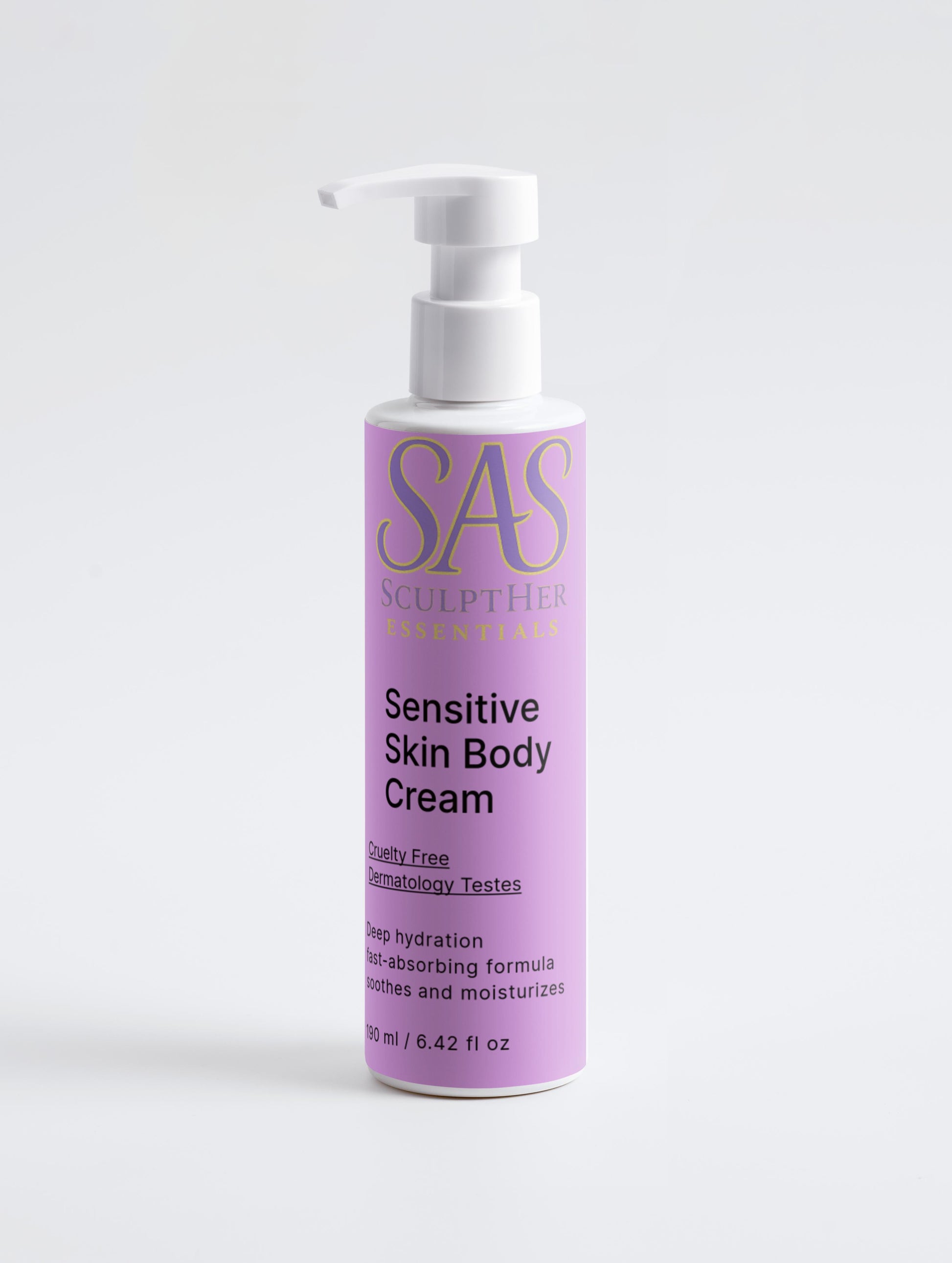Description: Our Sensitive Skin Body Cream is expertly crafted to nourish and protect delicate skin. Enriched with calming, soothing ingredients, this fast-absorbing formula delivers deep hydration without causing irritation, making it ideal for daily use on both - face and body. Designed specifically for sensitive and dehydrated skin, it effortlessly soothes while locking in moisture, leaving the skin feeling soft, supple, and perfectly balanced.